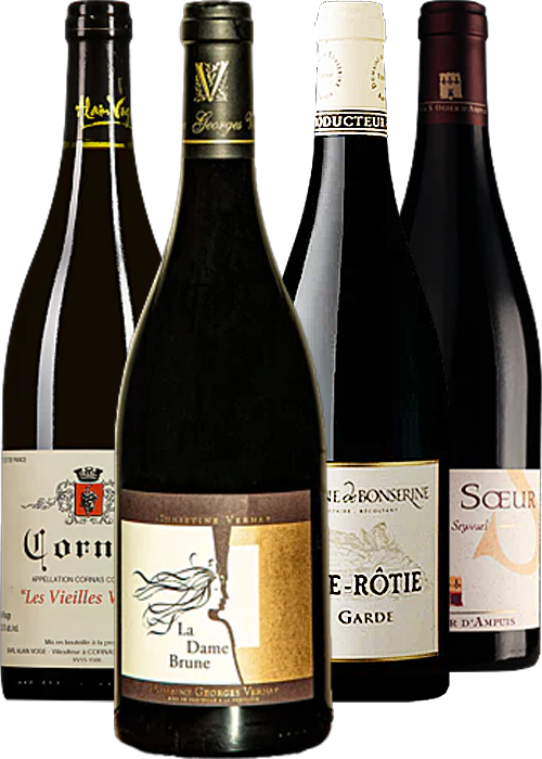 Quattro sublimi espressioni del Syrah settentrionale, che uniscono la potenza del Cornas, la finezza del Côte-Rôtie, la precisione aromatica di Seyssuel e la profonda eleganza di Saint-Joseph.